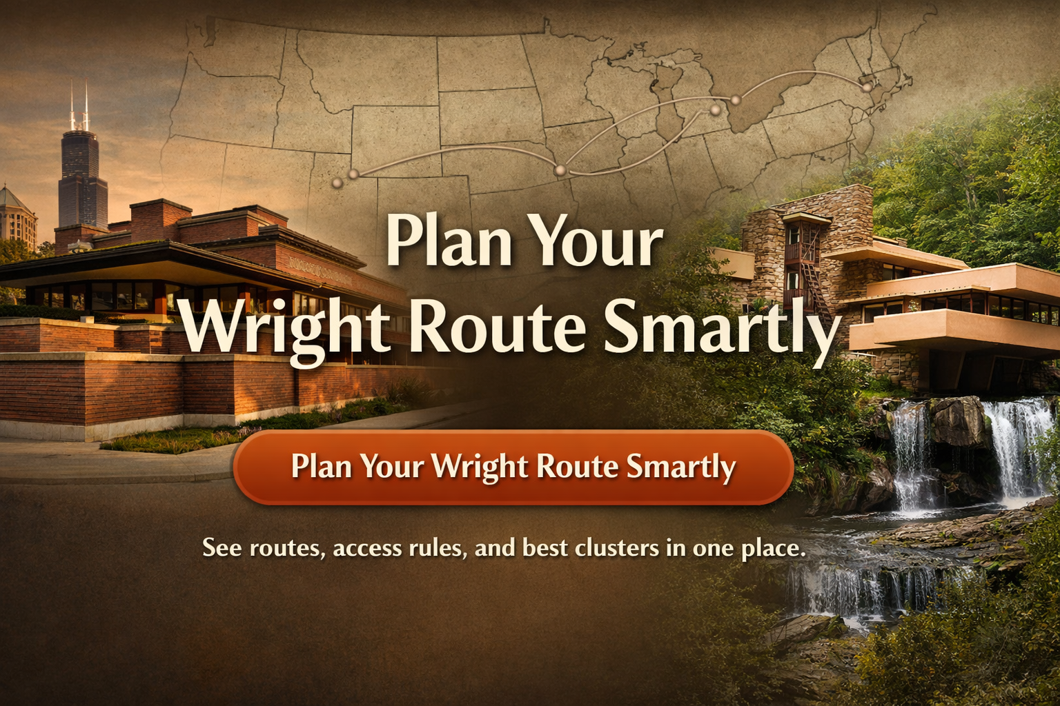Wright is one of the easiest architects to romanticize and one of the easiest to over-plan badly. The fix is simple: pick clusters with reliable public access, protect the strongest interiors, and let the weaker detours go.